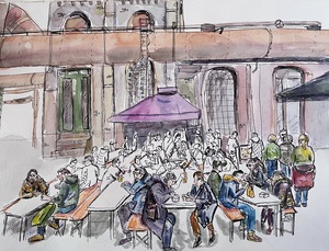 In allerlei situaties komen mensen samen. Op een terras, in een museum of tijdens een muziekconcert. Ik tekent hen graag live of vanaf een foto. Een sfeervol beeld ontstaat.