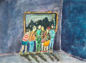 We concentreren ons allemaal op de kunstwerken in het museum. Maar wel zelf zijn ook de moeite van het bekijken waard. Het mooie is dat we vaak ongemerkt dezelfde houdingen aannemen, De handen achter de rug of in de zij. Hoe dat er uitziet op een schilderij? Dat laat ik graag zien.